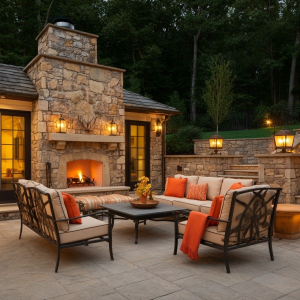 Today's designs also favor environmentally friendly features to help create a space where homeowners can unwind and entertain. "Native plants, pollinator-friendly gardens and blended natural stone are extremely popular. We're also seeing more interest in outdoor living spaces—fire features, outdoor kitchens and integrated lighting that extends the usability of the yard. Modern, clean-line plantings with year-round texture are also trending," Gill says.